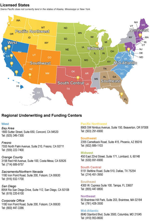 Today, Sierra Pacific operates three distinct business channels; Wholesale, Correspondent and Retail, and lends in 47 states through 11 Regional Fulfillment Centers. Our goal is to grow and expand our Wholesale and Retail channels by continuing to build strong wholesale broker relationships and add new retail branches throughout the United States. Correspondent Lending, our most recent offering, is designed to provide liquidity to emerging mortgage bankers.